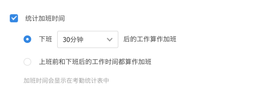 选项一:下班N分钟后的工作算作加班时间,时间范围为0-240分钟,区间5分钟