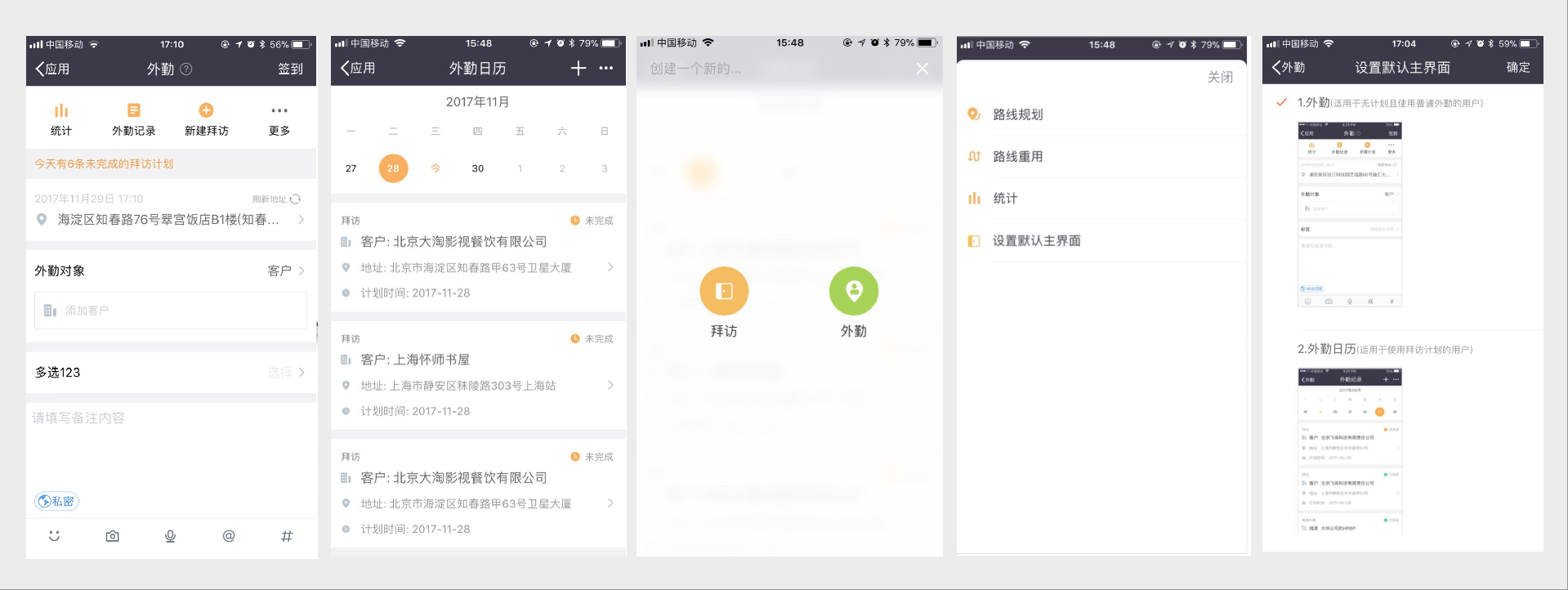 2)如果用户是深度的计划型用户,可以设置“外勤日历”为主界面,便于使用。