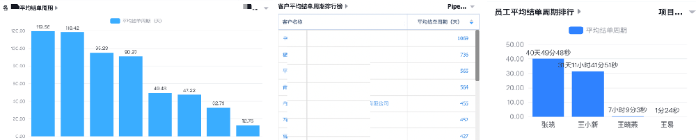 下图是我用纷享销客CRM创建的图表,直接在CRM观看团队、每个客户、每个销售的赢单周期: